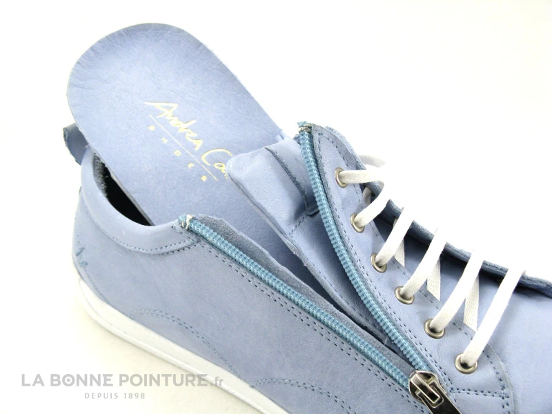 Cette belle basket basse Femme Andrea Conti 0063612-821 est en cuir souple bleu clair, légèrement nuancé.