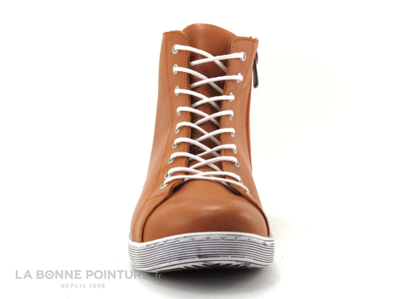 Cette chaussure montante Femme Andrea Conti est en cuir nuancé orange brique, avec la pointe arrondie.