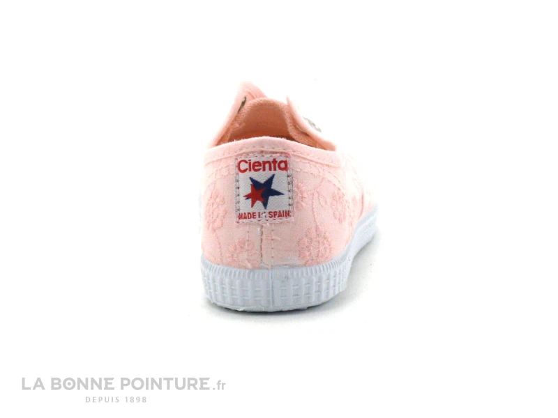 Pas de fermeture, une bride élastique en tissu éponge rose remplace la languette, pour enfiler et retirer rapidement la chaussure enfant Cienta (les oeillets sont décoratifs).