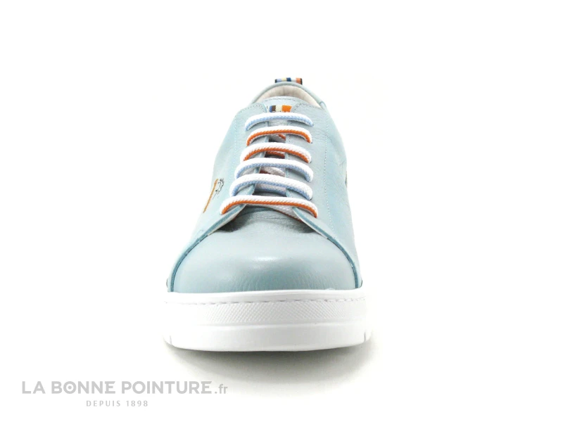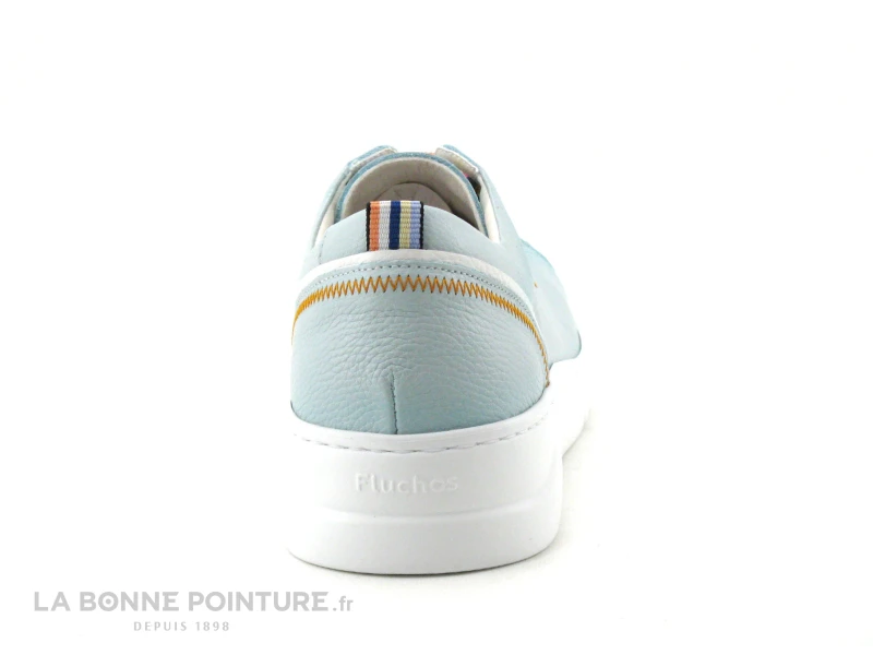 Vous fermerez vos sneakers Fluchos avec un lacet tricolore blanc, orange et bleu, traversant 6 oeillets.