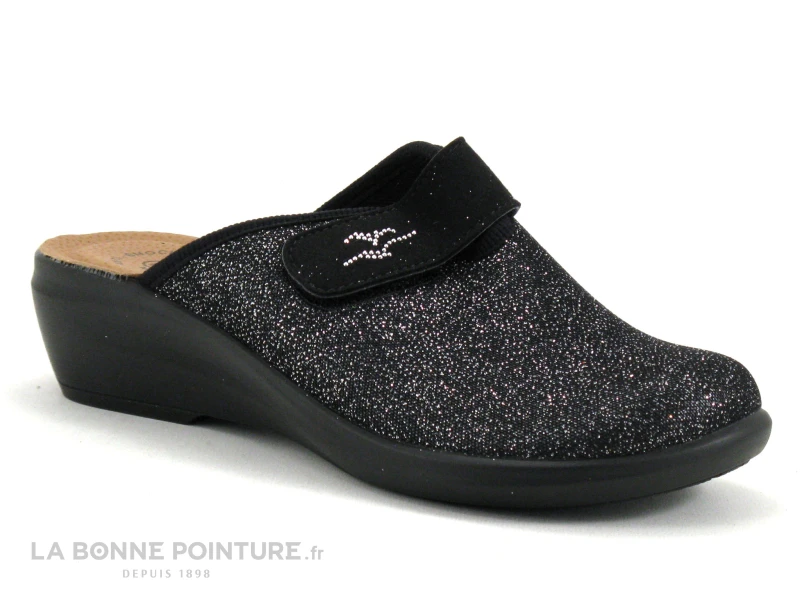 Fly Flot FAUILLY Noir – Paillettes Argent – Pantoufle Sabot Avec Scratch