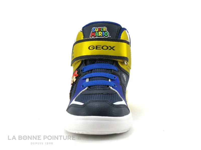 Cette basket montante Geox Super Mario s’enfile facilement grâce aux élastiques bleus, pas de lacet à nouer !