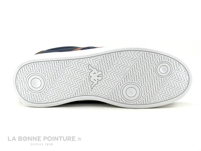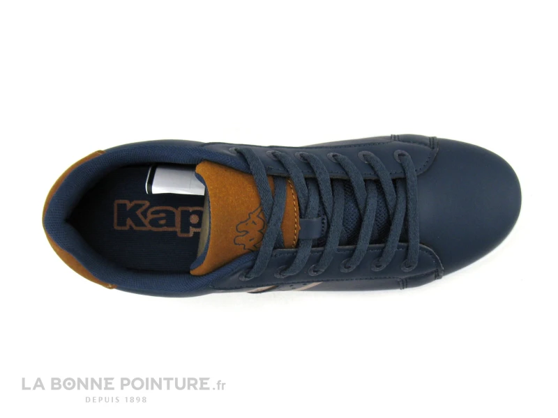 Cette basket mode fille ou garçon Kappa Alpha est principalement en simili cuir bleu marine, avec du marron camel.
