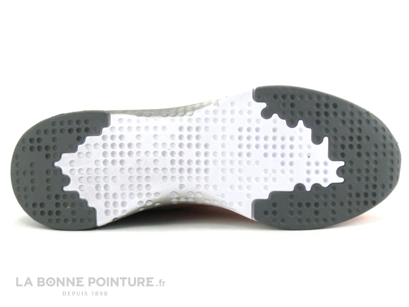 La semelle de marche est épaisse avec un très bon amorti, grise et blanche.