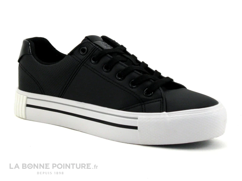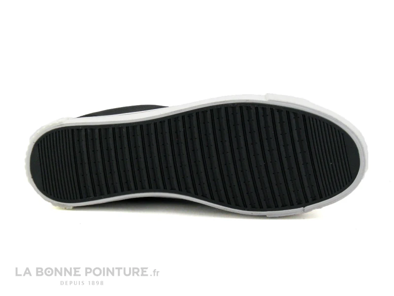 La partie arrière de la chaussure Femme Kappa est finement poinçonnée,avec un empiècement noir verni gravé du logo Kappa en argenté.