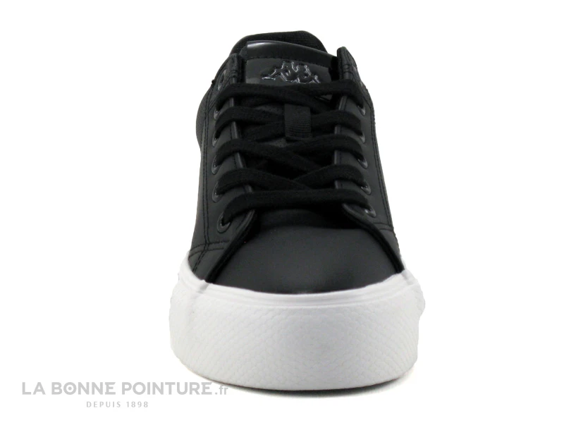 Ces belles baskets noires Femme Kappa Logo Tudy sont en simili cuir noir, avec la semelle qui contraste en blanc.