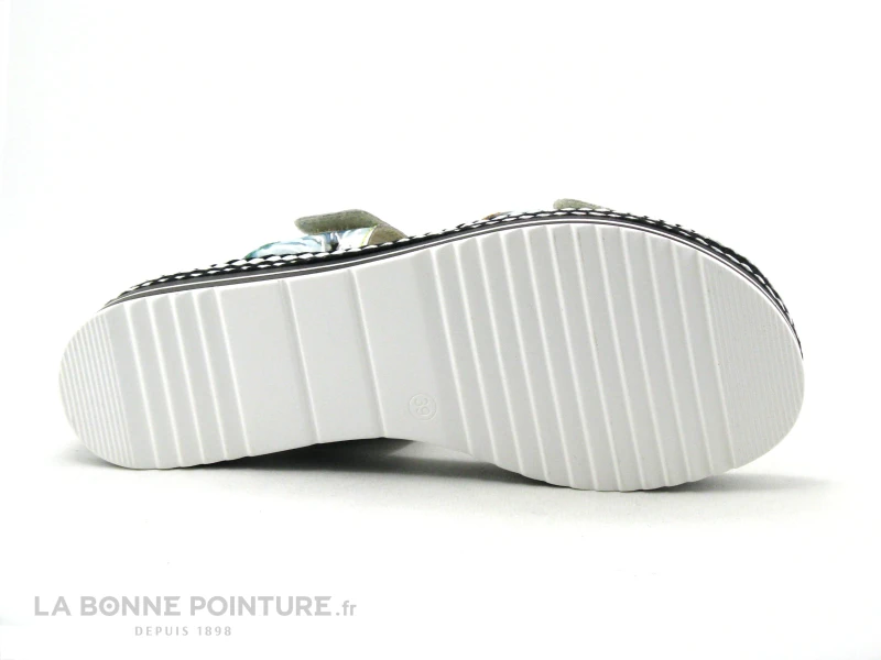Cette belle mule Femme Laura Vita CX1939-3 est en cuir multicolore à dominance de bleu, avec 2 brides à scrach qui permettent d’adapter la chaussure à chaque morphologie.