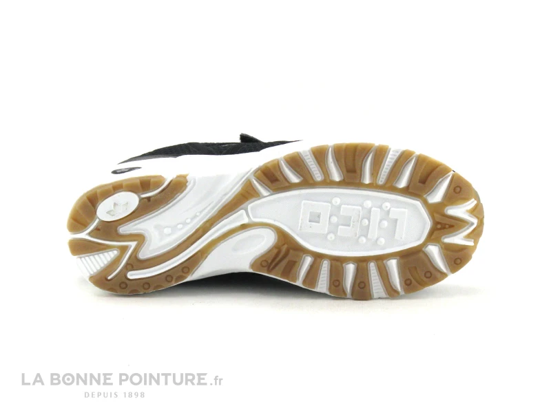 Cette basket enfant Lico est en textile et matiĂšres synthĂ©tiques rĂ©sistantes noirs, avec un peu de gris Ă l’arriĂšre.