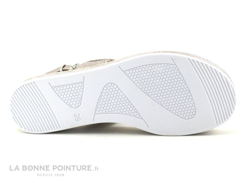 On retrouve ce bel aspect paille métallisée sur la semelle de marche des nu-pieds Marco Tozzi 2-28760-28, qui mesure environ 4.5 cm d’épaisseur au talon.