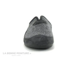 Cette charentaise Homme Ouf est en textile bleu marine, avec la partie arrière à carreaux gris.