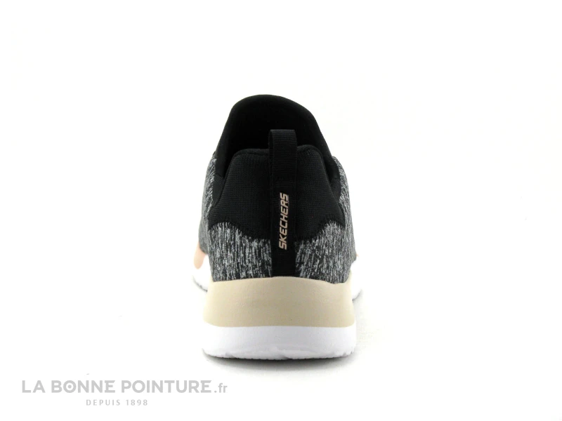 Pas de fermeture, cette basket Femme Skechers Dinamight s’enfile comme un chausson, en s’aidant de la petite languette à l’arrière.