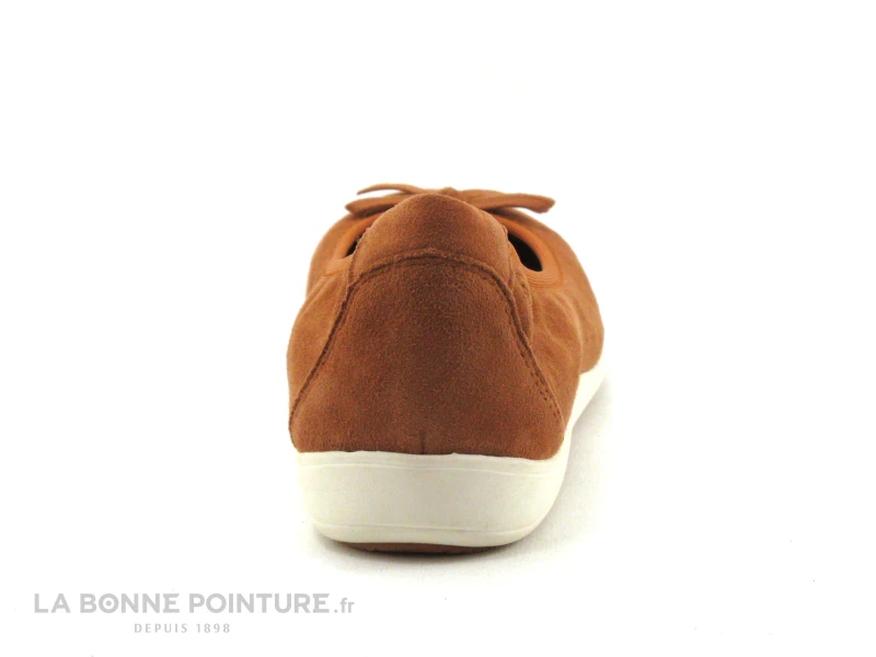 Cette ballerine mode Femme Tamaris est en cuir velours rouille (orange foncé), avec un petit noeud sur le dessus.