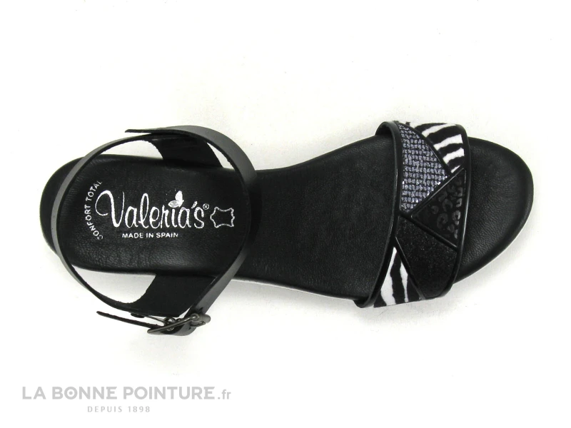 Originales avec leur bride zèbre et pailletée, ces séduisantes sandales noires Valeria’s 6135 !